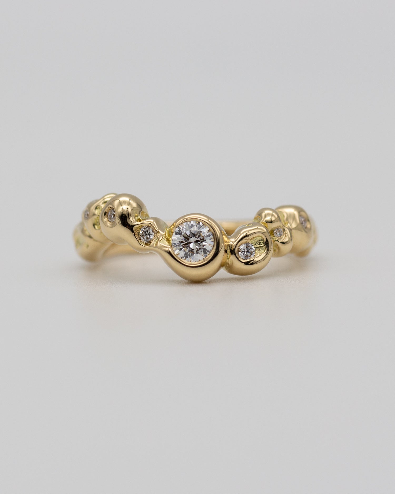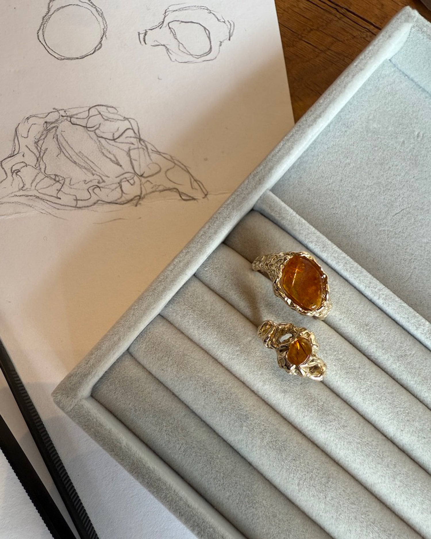 Udgangspunktet for Liljefelt smykker er at arbejde i massivt genanvendt guld, hvor gløden i det varme guld fremhæver og komplimenterer formgivningen. Diamanter og smykkesten i god kvalitet tilføjer både ekstra dybde og glimt i de organiske forløb, samt en personlig fortælling til smykket.